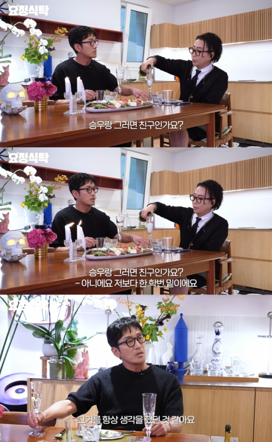 이에 하정우는 "인사드릴 타이밍을 놓쳤다. 그거에 대해 죄송함으로 샴페인을 드린 것"이라며 조승우, 고현정 편을 본 적이 있다고 말했다. 그는 "조승우는 한 학번 밑이다. 연락 못 한 지 몇 십년 된 거 같다. 마음만 친한 것"이라며 "승우도 그렇고 (고) 현정 누나도 그렇다. 연락한 지 7~8년이 됐다. 한때 핸드폰이 없지 않았나. 그때 연락이 끊겼다. 그 전엔 친했는데"라고 씁쓸함을 보였다.
