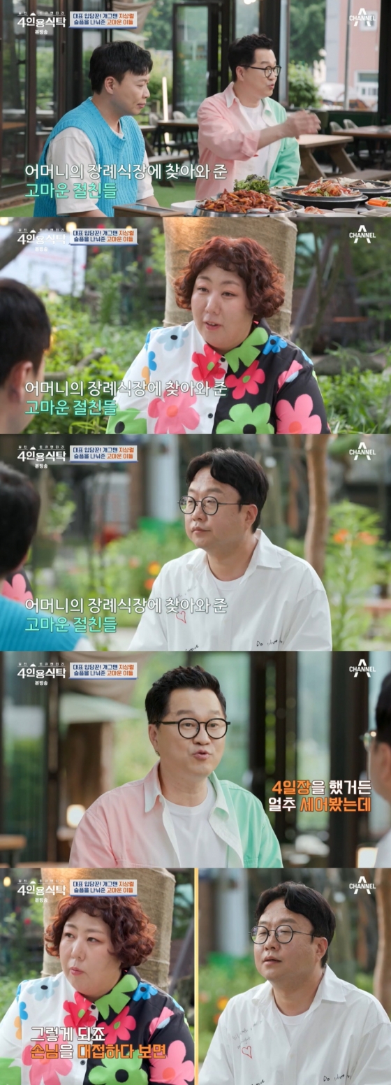 특히 지상렬은 모친상 당시 4일장을 했는데 지인들이 조문을 많이 와 술을 많이 마셨다고. 그는 "얼추 세어봤는데 술을 1000잔은 마신 것 같다. 물론 놓친 분도 있겠지만 가시는 길을 다 배웅했다. 너무 감사했다. 처음 오셨던 분이 최양락 형이다. 마지막으로 배웅한 사람이 강호동이다. 그 직전이 이태곤이다. 다 기억이 난다. 한분 한분 다 너무 감사하다"라며 울먹했다.