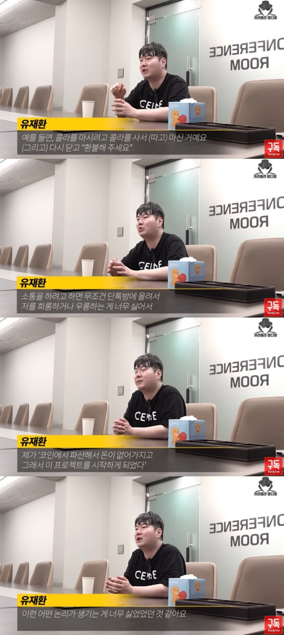 유재환은 지난 2021년쯤 코인으로 거액을 잃은 사실도 고백했다. 그는 "(코인으로) 10억 정도 잃었다"고 털어놨다. 그러면서 "코인으로 파산해 돈이 없어서 이 프로젝트를 시작하게 됐다는 논리가 생기는 것이 너무 싫었다"고 밝혔다.