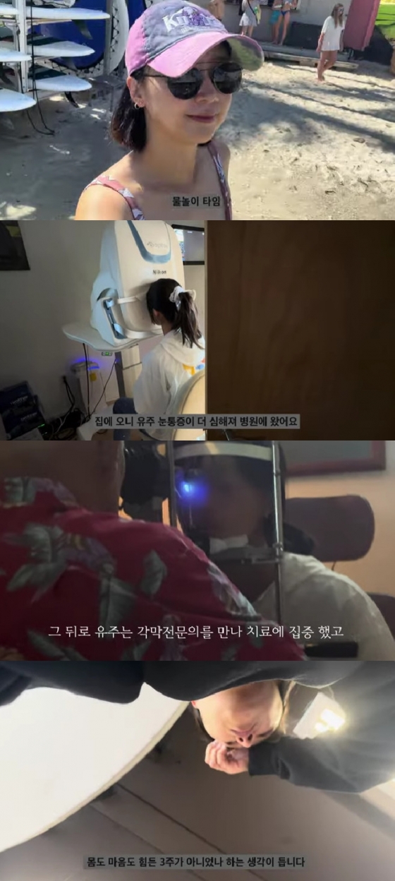 한유라는 딸 유주와 함께 병원으로 향했고, 검사 결과 심각한 각막 손상으로 눈에 염증이 퍼져 위험한 상황이었던 것. 한유라는 "치료에 집중한 덕분에 염증이 많이 좋아진 상태로 한국에 귀국할 수 있었다"면서도 "아이를 잘 케어하지 못했던 죄책감, 미안한 마음이 더해져 몸도 마음도 힘든 3주가 아니었나 생각한다"고 전했다.