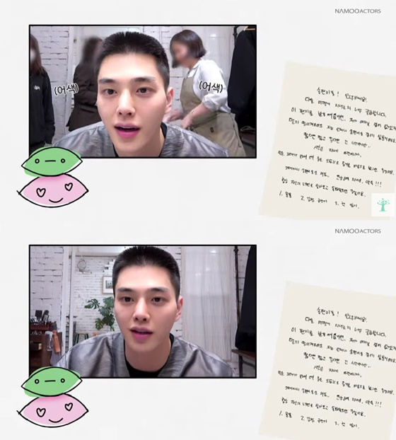 미용실에 도착한 그는 본격적인 삭발 전 앞머리부터 짧게 잘랐다. 짧아진 머리를 본 송강은 "억! 나 이렇게 생겼어?"라며 절망했다. 셀카 촬영도 시도했다가 "안 찍을래"라며 시무룩한 모습을 보였다.