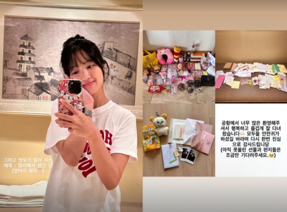 김헤윤은 13일 자신의 인스타그램에 "공항에서 너무 많은 환영해 주셔서 행복하고 즐겁게 잘 다녀왔습니다. 모두들 안전 귀가하셨길 바라며 다시 한번 진심으로 감사드립니다"라는 글과 함께 팬들에게 받은 선물과 편지를 인증했다.