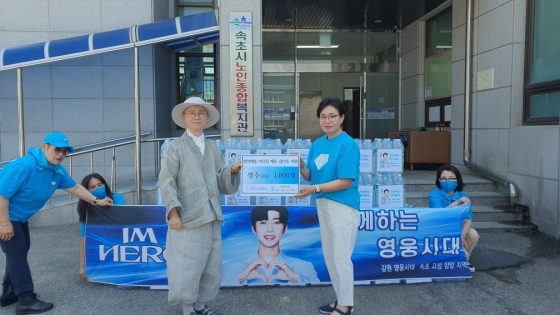 임영웅 팬클럽 '강원 영웅시대'는 임영웅의 생일(6월 16일)을 맞아 지난 11일 대한불교조계종 신흥사복지재단 속초시노인복지관을 찾아 2리터 제주 삼다수 생수 1800개를 후원했다.