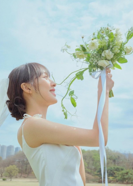 공개된 사진 속 김보라는 순백의 웨딩드레스를 입고 꽃다발을 든 채 포즈를 취한다. 특히 그의 환한 미소와 상큼한 분위기가 돋보여 이목을 끈다.