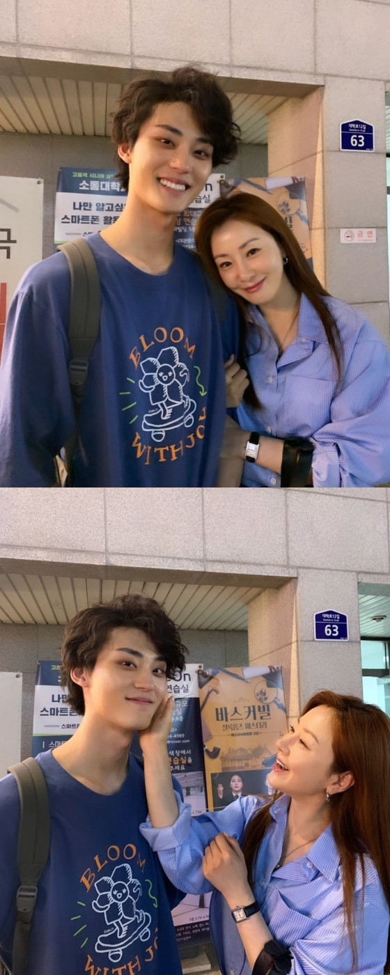 오나라는 15일 자신의 인스타그램에 "드라마 '스카이 캐슬'에서 만나 엄마와 아들의 인연을 이어오고 있는 유진이가 중앙대학교에 합격하고, 서울 연극제 작품으로 첫 공연에도 참여했다"라고 시작하는 글과 함께 사진을 공개했다.