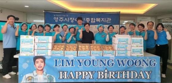 임영웅 팬클럽 '영주 예천 영웅시대'는 임영웅의 생일(6월 16일)을 맞이 지난 14일 경북 영주시 휴천동 영주시장애인종합복지관(관장 이승배)을 방문해 회원들이 정성스럽게 만든 카스텔라와 두유를 전달했다.