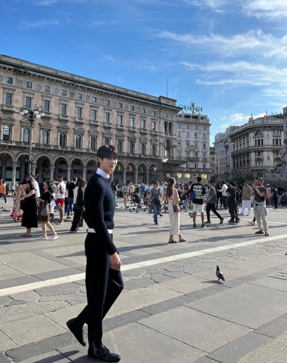 배우 변우석이 이탈리아 밀라노에서도 압도적 피지컬을 자랑했다.