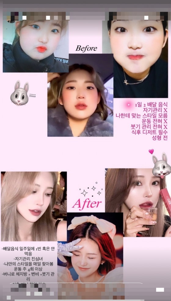 최준희는 자신의 다이어트 비포 애프터 사진을 게재하고 성형수술에 대해서도 직접 언급했다.