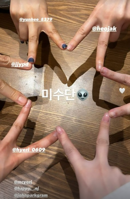 카리나도 자신의 계정에 "미수단"이라며 '미스터리 수사단' 멤버들이 한 자리에 모여 손가락으로 별모양을 만들며 의기투합한 사진을 공개, 혜리가 이 게시물을 리그램하며 친분을 드러냈다.