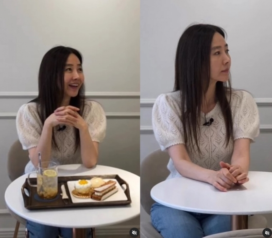 강수지는 사진에서 아이보리 컬러 니트와 청바지로 카페에서 일상을 보냈다.