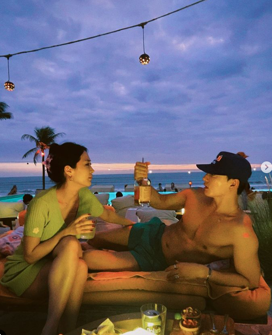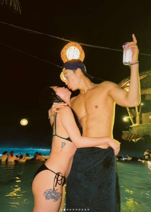 사진에서 허니제이는 정담과 함께 수영복을 입고 뜨거운 스킨십을 나누고 있다.