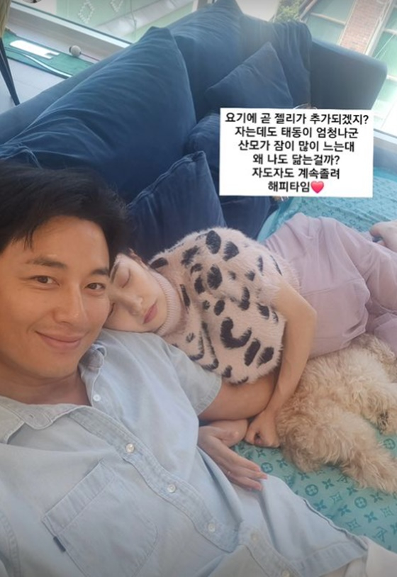 이어 "산모가 잠이 많이 느는데 왜 나도 닮는 걸까? 자도 자도 계속 졸려"라며 "해피 타임♥"이라고 덧붙였다.