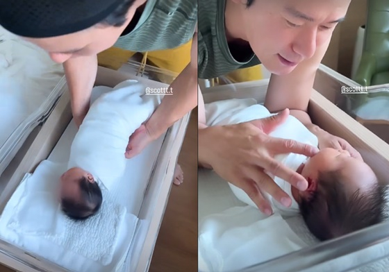 아유미 남편은 자그마한 딸이 사랑스러운지 볼을 톡톡 건드려 보기도 했다.