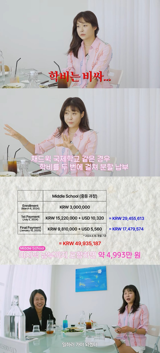 이어 그는 "첫 번째로 3,000만 원을 냈었다. 하반기에 한 2,000만 원 정도 또 내야 한다"라며 "나는 둘이 합해 1년 학비가 1억 원이다"라고 밝혀 입을 떡 벌어지게 만들었다.