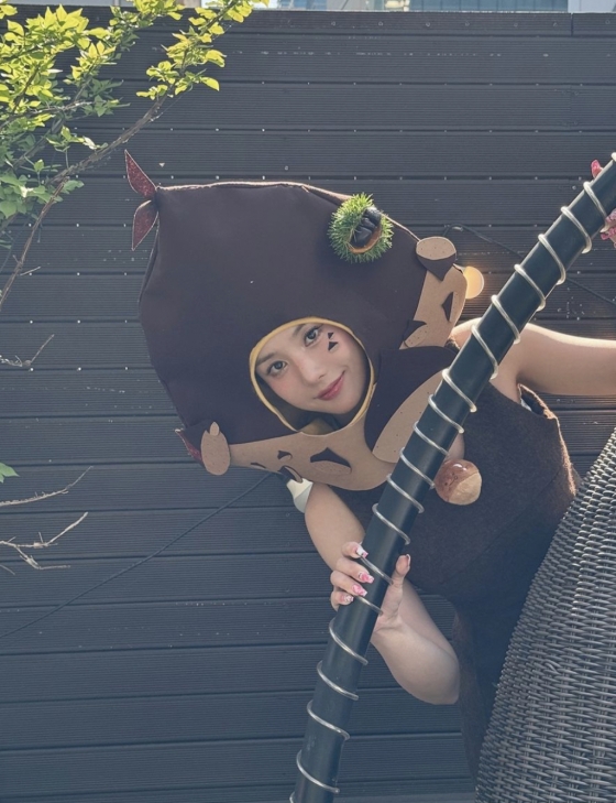 공개된 사진 속 권은비는 잘 익은 '가을 햇밤'을 연상시키는 인형 탈을 쓴 채 카메라 앞에서 '깨발랄'한 포즈를 취하고 있다. 인형 탈을 썼음에도 굴욕 없는 비주얼과 몸매가 돋보이며, 보는 이들의 시선을 사로잡았다.