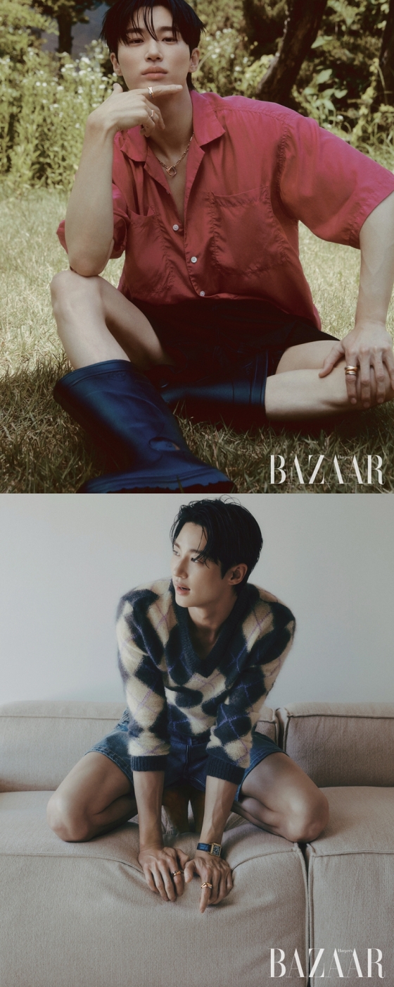 21일 패션 매거진 하퍼스 바자에서 배우 변우석과 함께한 7월호 화보 중 일부 컷을 공개했다. 이번에 새롭게 공개한 5장의 사진에서는 핫 핑크 컬러의 셔츠와 레인부츠, 스트라이프 티셔츠 등으로 청량한 소년미를 드러낸 컷부터 올블랙 룩에 시크한 표정을 지은 컷까지 다채로운 매력을 드러냈다. 특히 아가일 패턴의 니트에 데님 쇼츠를 입고 소파에서 나른한 포즈를 취한 모습은 팬심을 사로잡기에 부족함이 없다.