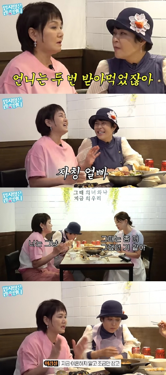 조혜련은 "언니는 두 번 받아먹지 않았냐"라며 이경실의 재혼을 언급했고, 그러면서 "난 두 번째 결혼식은 (하객) 초대를 안 했다"고 말했다. 이경실은 "얘는 마음이 급했다. 두 번째 결혼을 빨리 하고 싶어 했다. 알리고 할 새가 없었다"고 말해 웃음을 안겼다.