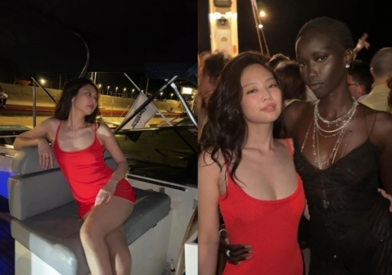 공개된 사진 속 제니는 빨간색 미니 드레스를 입고 펌 헤어 스타일을 선보이고 있다. 무대에서 보여준 완벽한 모습과는 사뭇 다른 자유분방한 모습이 눈길을 끈다.