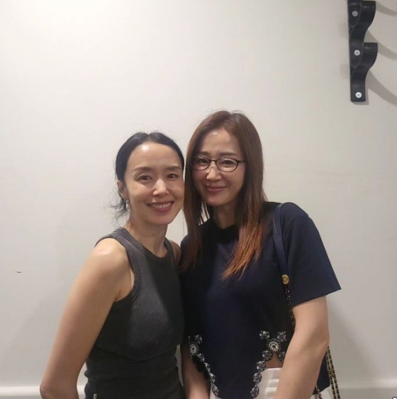 공개된 사진에서 김경화 아나운서는 배우 전도연과 어깨를 나란히 하고 카메라를 응시하고 있다. 연극 '벚꽃 동산' 무대에 오르고 있는 전도연의 연기를 본 후 찍은 사진으로 보인다.