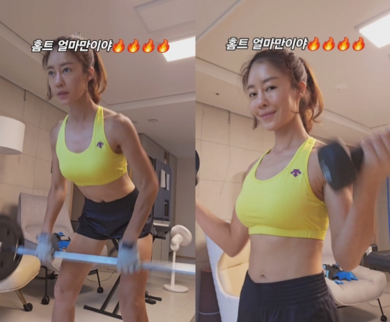 공개된 영상 속에는 '홈트 얼마 만이야'라며 집에서 근력 운동 중인 이지현의 모습이 담겨있다. 상체 위주의 운동을 진행하고 있는 이지현의 탄탄한 팔 근육과 복근을 자랑하고 있어 눈길을 끈다.