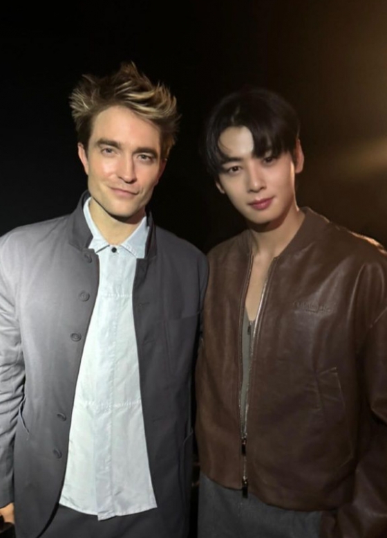 공개된 사진 속엔 차은우가 한 명품 브랜드 행사 참석 차 프랑스 파리를 방문한 모습. 특히 그는 행사장에서 로버트 패틴슨을 만나 훈훈한 투샷을 보여 이목을 끌었다.
