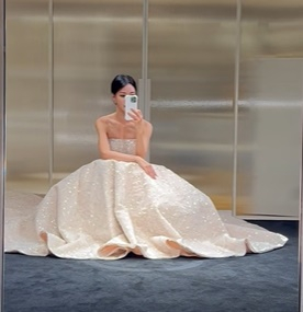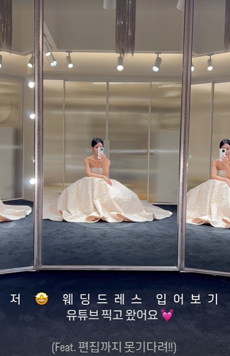 25일 한예슬은 자신의 계정에 "저 웨딩드레스 입어보기 유튜브 찍고 왔어요"라는 글과 함께 사진을 게재했다.