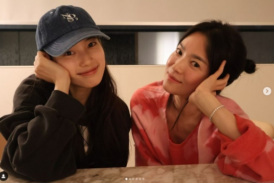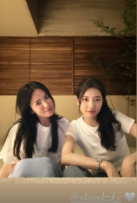 송혜교는 25일 자신의 계정에 수지의 계정을 태그하고 수지와 함께 찍은 사진을 공개했다.