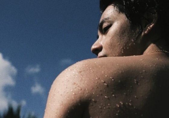 헝클어진 머리를 하고 물기를 머금은 뒷모습을 한 사진에서는 살짝 보이는 넓은 등판은 시선을 뗄 수 없게 만들었으며, 뷔 특유의 나른하고 매혹적인 분위기를 자아낸다.