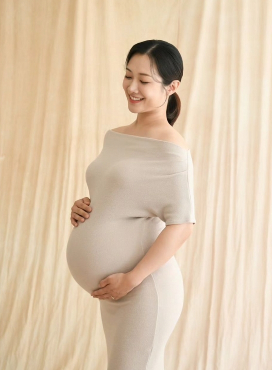 김민정은 27일 자신의 만삭 D라인 사진을 공개했다.