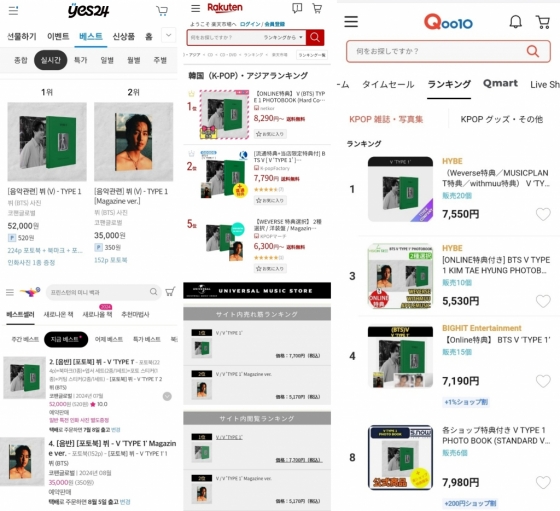 일본 최대 인터넷쇼핑몰 라쿠텐에서는 K팝 아시아랭킹 부문에서 1위, 2위, 5위에 올랐으며 실시간 1, 2, 3, 4, 5위 자리를 번갈아 가며 순위를 장식하고 있다. 또 다른 대형 인터넷 쇼핑몰 큐텐에서는 1위, 3위, 4위, 8위 등 10위권 내에 4개가 베스트셀러를 기록했다. 큐텐 역시 순위를 번갈아 가며 상위 판매순위 자리를 지키고 있다.
