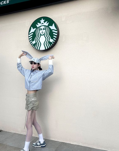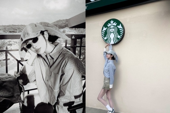 최준희는 1일 모 커피 브랜드 로고를 배경으로 찍은 사진들을 공개했다.