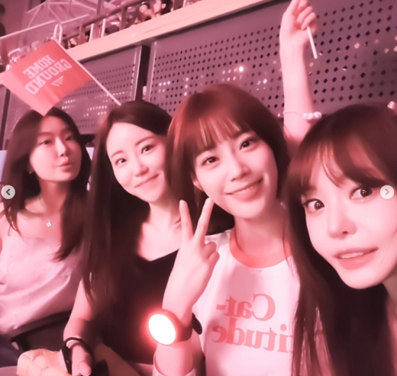 사진 속 서유리는 허송연 허영지 자매, 레이디제인과 함께 LCK T1과 KT의 경기를 직관했음을 인증했다.