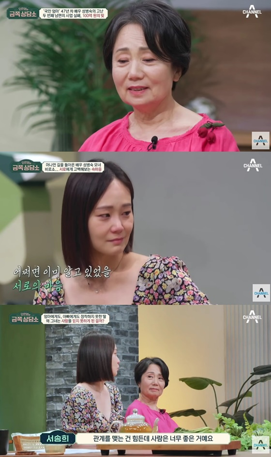 서송희와 지난해 채널A 예능 프로그램 '오은영의 금쪽 상담소'에 출연해 당시 서송희는 어머니 성병숙의 이혼으로 어린 시절 혼란을 겪었다고 털어놨다. 또 성병숙은 첫 결혼을 통해 얻은 딸 서송희를 제대로 돌보지 못한 이유에 대해 재혼 후 남편의 사업 부도로 100억여원의 빚을 떠안았기 때문이라고 밝혀 안타까움을 자아냈다.