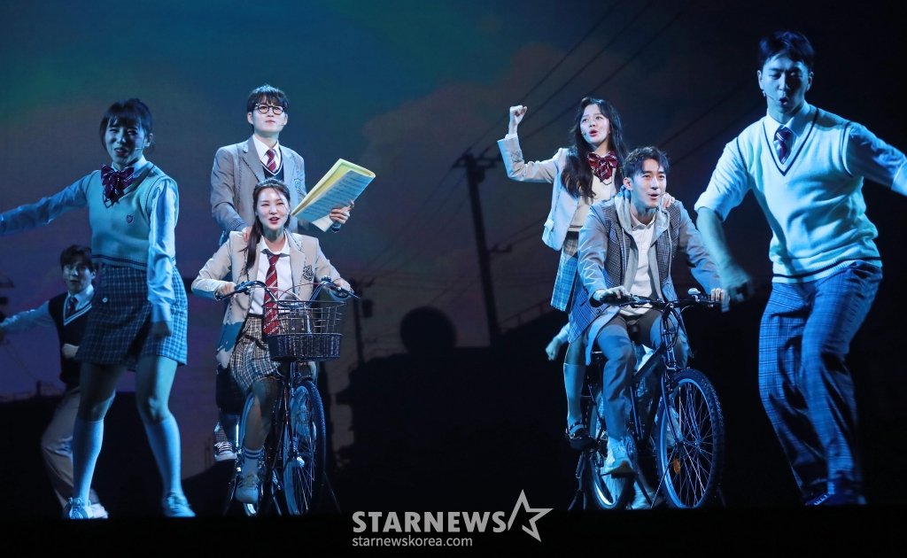 이어 조환지는 "연습이 빨리 진행됐고, 연습하는 순간순간이 발버둥이었던 것 같다. 일주일 만에 노래를 다 뗐는데 모든 배우들이 '가능할까?' 싶었는데 가능하더라. 작곡가 프랭크 와일드혼에게 들려드렸을 때 노래가 좋고, 관객들이 좋아하겠다는 자신감이 생겼다. 그래서 저희끼리도 빨리 친해진 것 같다. 매 순간순간이 작품에서 보여드린 것처럼 청춘의 연속이었다. 우리의 기운을 잘 돌려드리기 위해 연습 기간에 많이 노력한 것 같다"고 전했다.