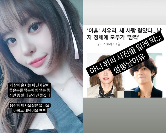 앞서 2일 서유리는 전 남편 최병길 PD와 이혼 폭로전 뒤 '새 사랑'을 암시, 이목을 집중시켰다. 특히 그는 SNS에 "'썸남'이 뷔를 아주 조금 닮았다"라고 직접 밝혀 뜨거운 화제를 모았다.