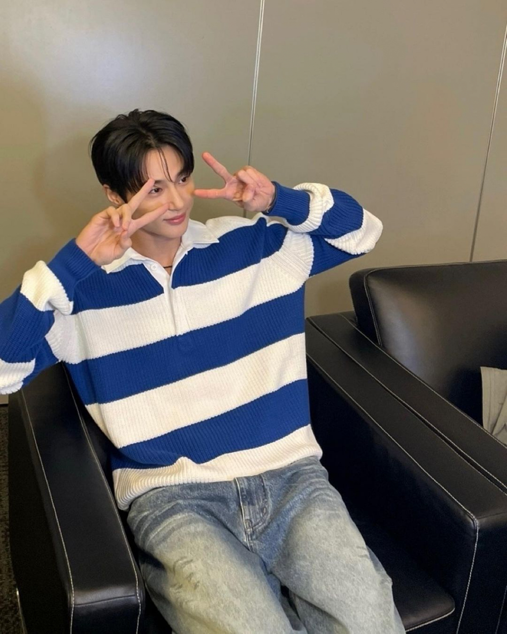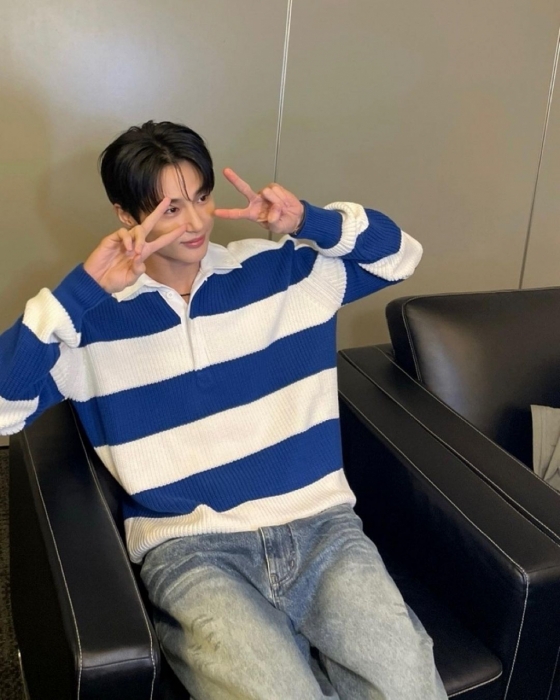 사진 속 변우석은 스트라이프 티셔츠에 청바지를 입은 채 양손으로 브이 포즈를 취하고 있는 모습. 그는 날카로운 콧날과 베일 듯한 턱선, 매력적인 미소를 지으며 글로벌 여심을 저격했다.