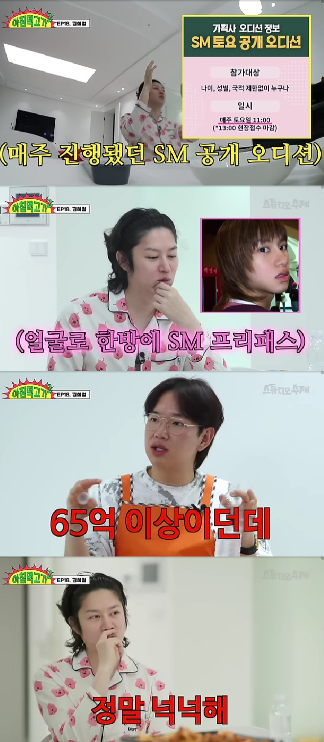 김희철은 데뷔하게 된 계기에 대해 "나 뭐 하고 살까 고민하던 와중에 친구들이 오디션 보라고 해서 홈페이지에 SM 공개 오디션 공지가 떠 있더라. 무작정 서울에 왔는데 준비도 안 했다. 근데 노래가 생각이 안 나더라. 그래서 애국가 불렀더니 그냥 합격했다"고 밝혔다.