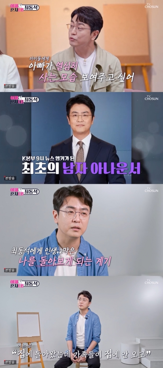 이어 최동석은 자신을 소개하며 "좋아하는 건 굉장히 몰입해서 좋아하고, 관심없는 것은 아예 관심 없다. 내 세상에 빠져 있는 타입이었던 것 같다. 학창 시절에는 법조인을 꿈꿨고, 아나운서는 대학교 3학년 때 꿈꾸게 됐다. 사회에 영향력 있는 사람이 되고 싶었고, 2004년 KBS 공채 30기 아나운서로 입사하게 됐다"고 전했다.