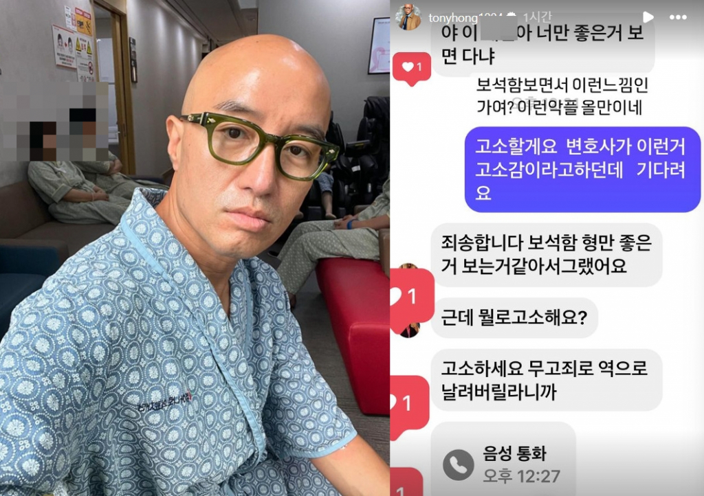 이 네티즌은 "야 이 개X아 너만 좋은 거 보면 다냐"라며 욕설을 내뱉었다. 그러자 홍석천은 "고소할게요, 변호사가 이런 거 고소감이라고 하던데 기다려요"라고 단호하게 행동했다.