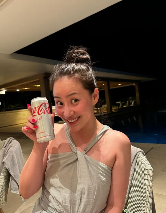 조현아는 어깨가 노출된 상의를 입고 수수한 매력을 뽐내고 있다. 화장기 없는 그는 음료 캔을 들고 행복한 미소를 지어 보이기도 했다.