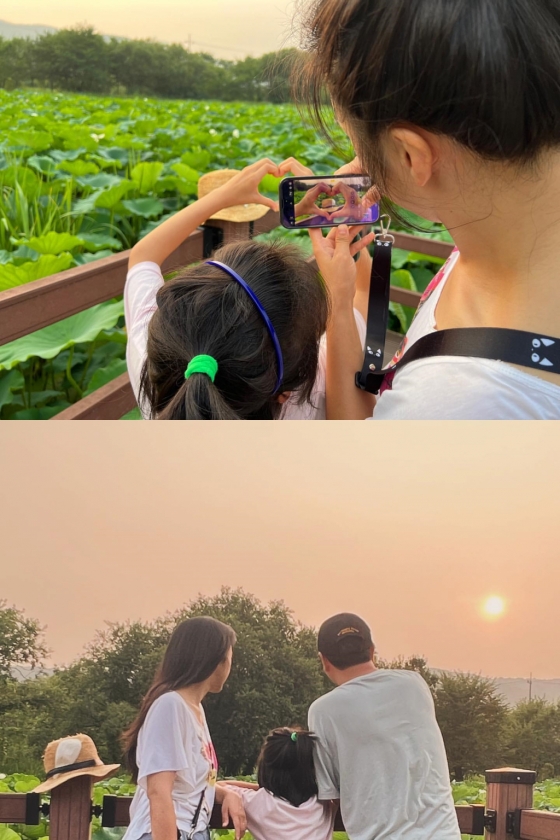 공개된 사진 속에는 8세 딸과 즐거운 한때를 보내고 있는 탕웨이의 모습이 담겼다. 또한 탕웨이는 아름다운 풍경을 배경으로 남편 김태용, 딸 썸머와 나란히 서있는 사진을 공개해 훈훈함을 안겼다. 단란한 세 가족의 뒷모습이 눈길을 끈다.