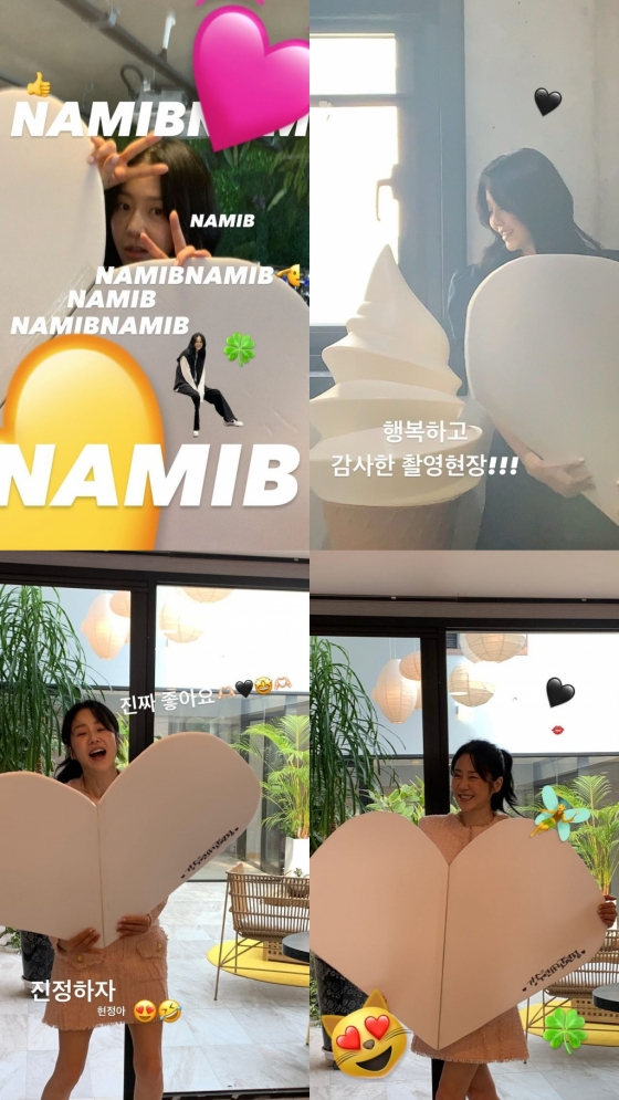 공개된 사진 속에는 드라마 '나미브' 촬영 현장에서 찍은 듯한 고현정의 사진이 담겼으며 그는 하트 모양으로 잘린 우드락을 들고, 여러 포즈를 취하고 있다. 행복한 듯한 그의 미소가 훈훈함을 아낀다.