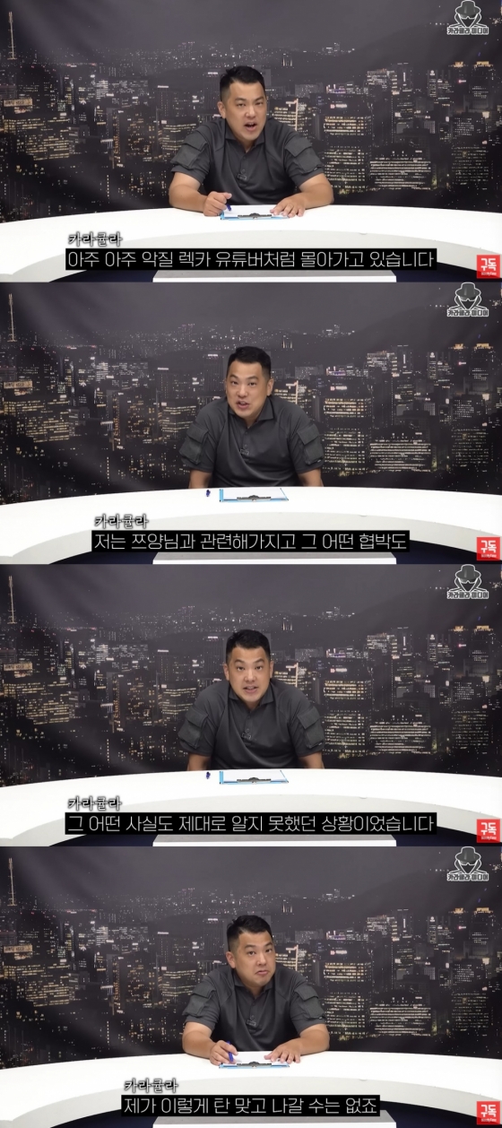유튜버 카라큘라가 쯔양을 협박해 돈을 뜯어냈다는 의혹에 억울함을 드러냈다.