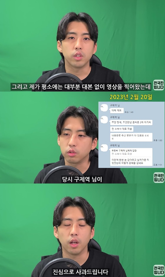 끝으로 전국진은 "지금 저도 저의 잘못을 충분히 인지하고 있다. 저에게 욕하는 것도 모두 감수하고 앞으로 제 인생에 계속 따라다닐 부정적인 꼬리표도 겸허히 받아들이겠다. 이번에 저와 구제역의 녹취록이 유출됨으로 그렇게 숨기고 싶었을 과거가 공개돼 피해를 본 쯔양에 진심으로 사과드린다"고 고개를 숙였다.