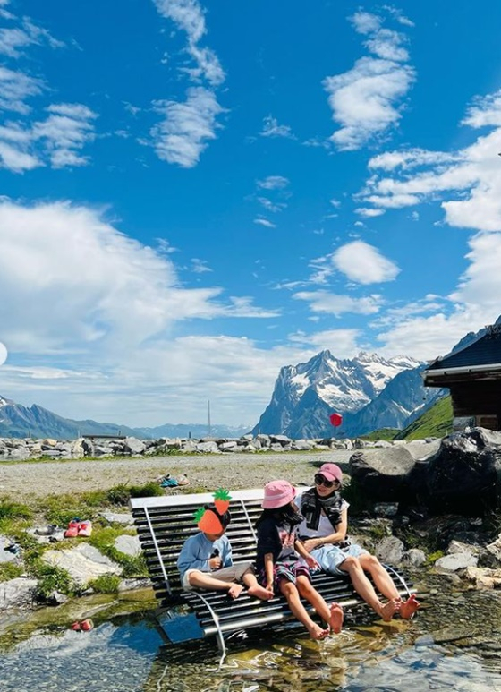 이보영과 딸은 스위스의 아름다운 풍경을 배경 삼아 길을 걷고 있다. 또 이보영은 자녀들과 벤치에 앉아 대화를 나누고 있는 모습을 공개하기도 했다.