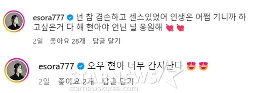 무대 영상 댓글뿐만 아니라 조현아의 SNS 게시글 댓글에도 이와 비슷한 의견이 이어지고 있는 상황. 이에 이소라는 선배로서 그를 응원하고 따뜻한 말을 건넸다.