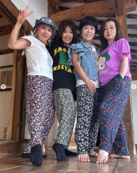 사진 속에는 신봉선이 지난 15일 방송된 채널A '절친 토큐멘터리-4인용 식탁'(이하 '4인용 식탁') 출연자인 조혜련, 문희경, 서지오와 촌캉스를 떠난 모습이 있었다.