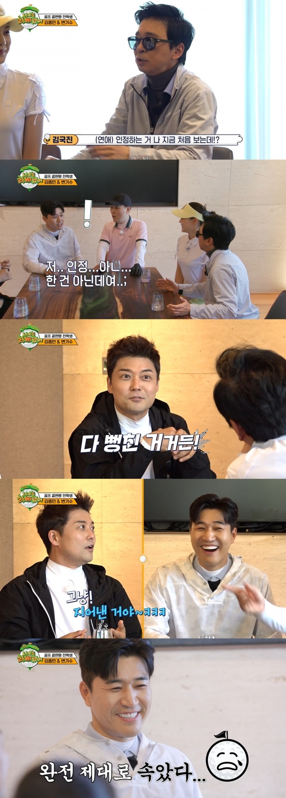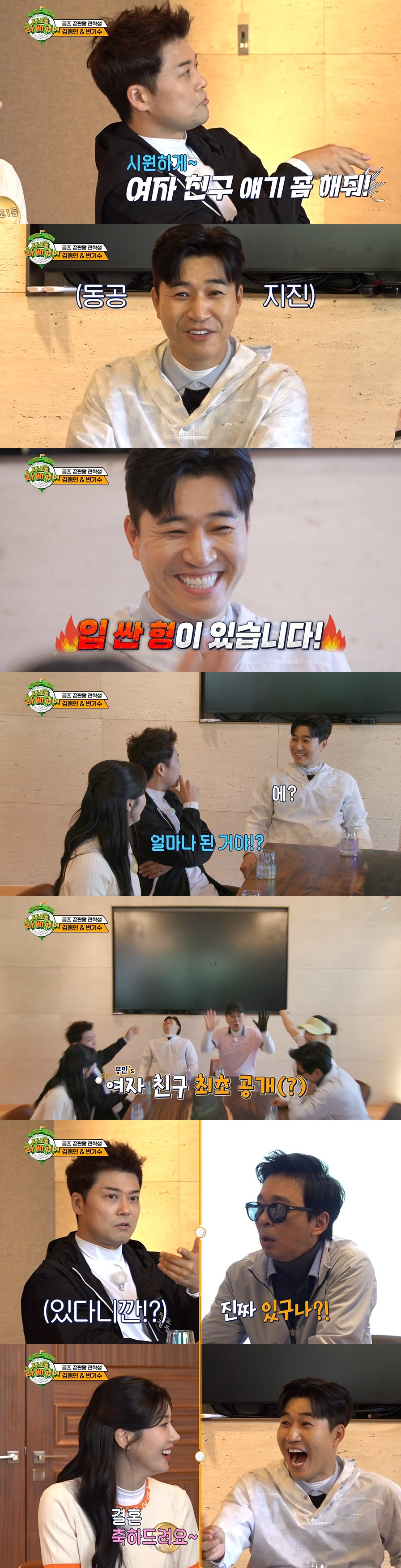 김종민은 당황한 눈빛을 보이며 "입 싼 형이 있다"라며 어색한 웃음을 지었고, 전현무는 "얼마나 된 거야? 내가 볼 때는 결혼 전제로 진지하게 만나는 거 같다. 종민이가 원래 다른 프로그램 했을 때도 결혼 생각이 없었다"라며 궁금해했다.