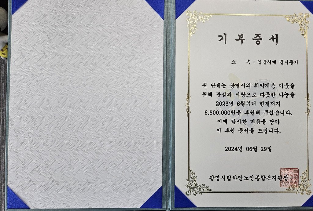 '웅기종기'는 지난 2021년부터 광명시립하안노인종합복지관에서 매달 두 번의 봉사와 월 50만 원의 후원금으로 선한 영향력을 실천하고 있다.