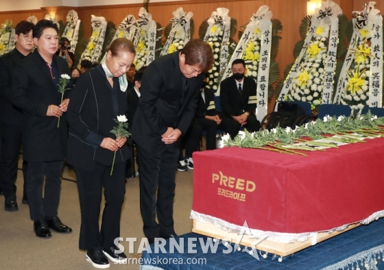 연예방송故 현철 영결식 '헌화하는 동료들'[★포토]발행 : 2024.07.18 ・ 09:00이동훈 기자수년간 투병 생활 끝에 별세한 가수 故 현철(본명 강상수) 영결식이 18일 오전 서울 송파구 풍납동 서울아산병원 장례식장에서 진행된 가운데 동료가수 인순이, 진성 등이 헌화하고 있다. /2024.07.18<저작권자 © 스타뉴스, 무단전재 및 재배포 금지>현철발인서울영결식헌화동료추천 기사이동훈 기자기자홈좋아요 연예-방송의 인기 급상승 뉴스연예-방송의 최신 뉴스